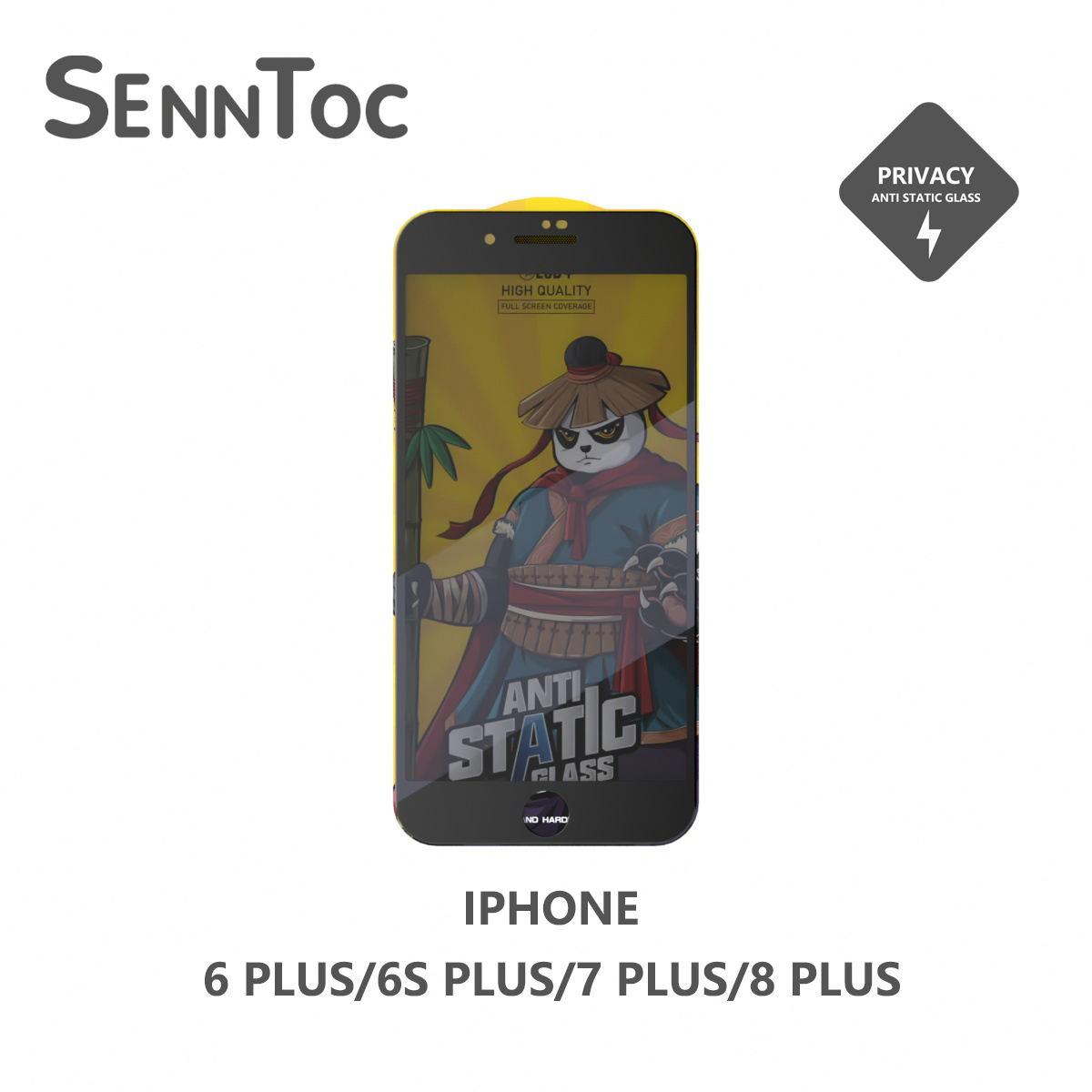 / 熊猫防窥玻璃膜(防静电)IPHONE 6 PLUS/6S PLUS/7 PLUS/8 PLUS 黑